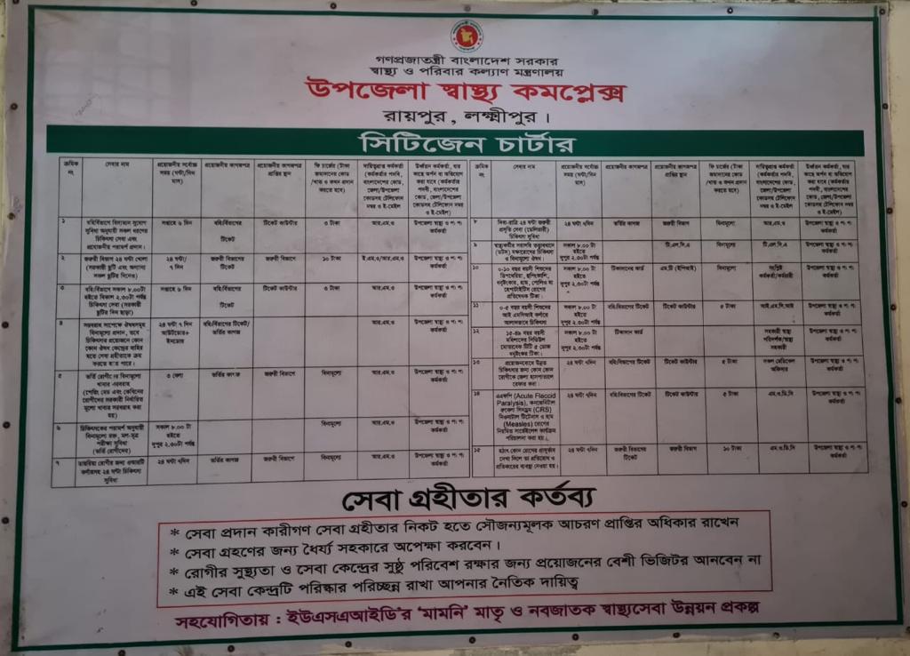 ১৪। উপজেলা স্বাস্থ্য কমপ্লেক্সে আগত রোগীদের স্বাস্থ্য সেবা নিশ্চিত করা এবং সুস্থ্য জাতিগঠনে রায়পুর হাসপাতালের সকল কর্মকর্তা-কর্মচারীরা সদাসর্বদা এবং তৎপর থাকায় প্রতিজ্ঞা বদ্ধ।